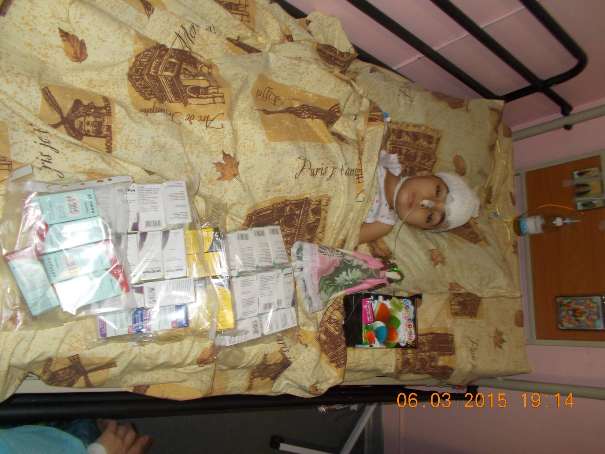Очень-очень нужна помощь нашей Зоряночке. Вчера в 9 утра их из Киева отправили Днепропетровскую инфекционку. Зоряна после удаления опухоли. Весь день в дороге, приехали в 6 вечера. Ребенок в очень тяжелом состоянии. В Киеве она лежала в реанимации. Лекарства есть только на сегодня. Нужны антибиотики: Цефепим (2 грамма в сутки), Амписульбин. Памперсы размер 6. Возможно, нужна помощь и питанием.