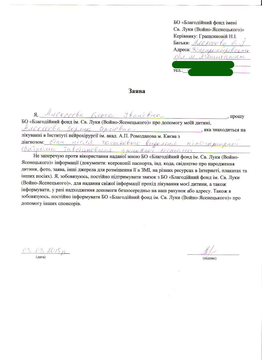 Зоряна заболела в январе 2015 года. Все началось с головной боли и рвоты. В районной больнице было сделано МРТ, после чего Зоряну направили в Киевский Институт Нейрохирургии.