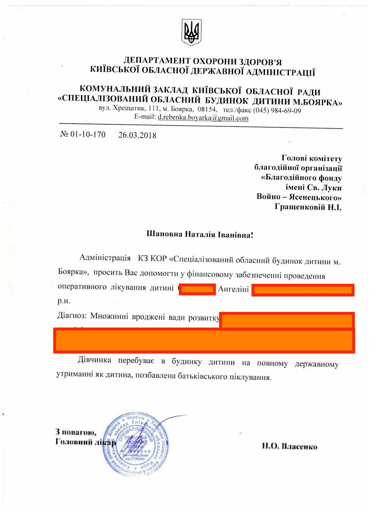 Вранці нам подзвонив керівник дитячого будинку з проханням допомогти в забезпеченні оперативного втручаня для Ангеліни.