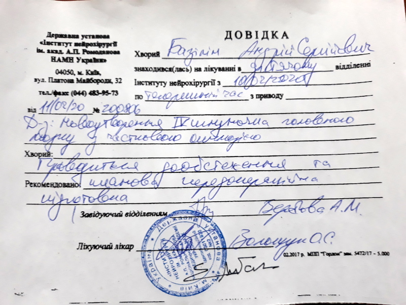 Надходження на лікування Базиліна Андрія