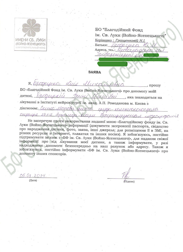Все деньги, которые были получены от государства потрачены на предыдущую операцию и лечение спинномозговой грыжи грудо-поясничного отдела. Ребенок на инвалидности.