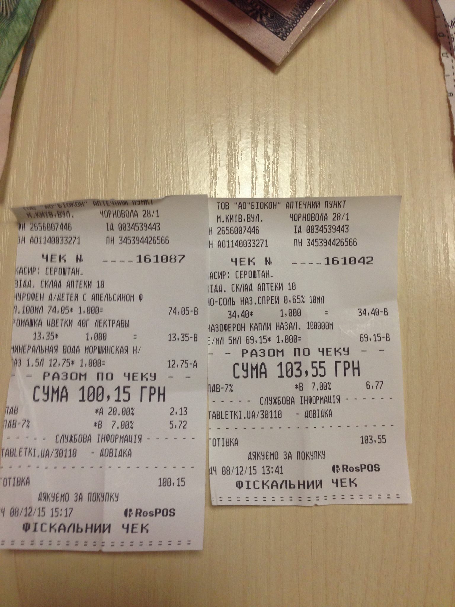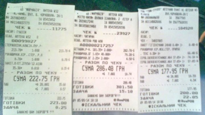 2) Лекарства, препараты, гипсы – 463,98 + 386.55 грн.