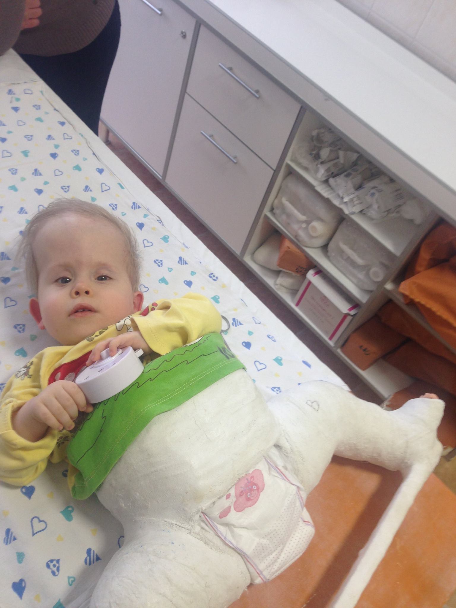 Наши волонтеры не знают ни сна, ни выходных, ни покоя. На выходных перед Новым годом Ванечку навещала Ольга Решетняк. Купила все что ему было необходимо: памперсы, салфетки, гипсовочные материалы. Он очень славный малышик. Внимательно слушал что ему Оля рассказывала. Развивается он прекрасно. Слава Богу, получается обойтись без шунта. Сейчас идет борьба за ножки. У него вывихи в суставах и дисплазия. Но самое главное, что чувствительность – сохранена. И есть все шансы ходить.