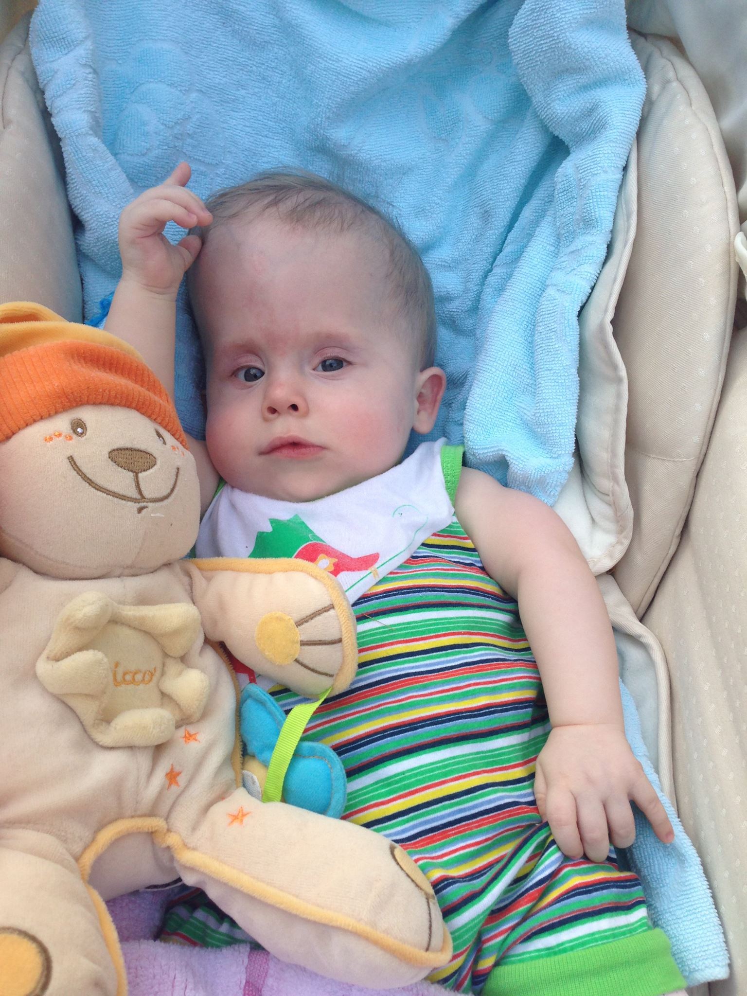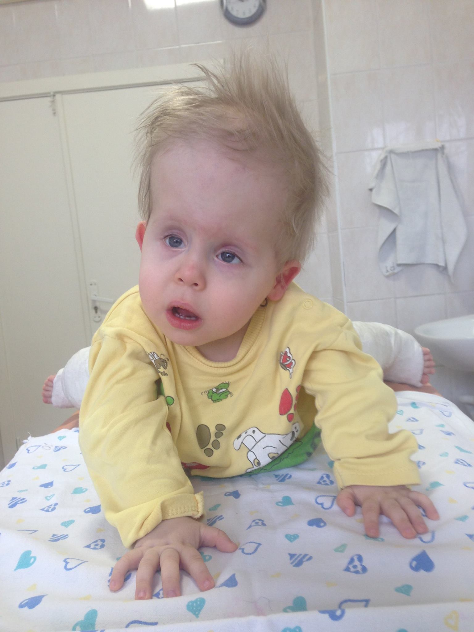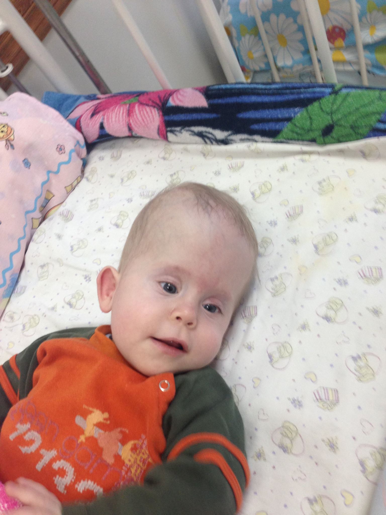 У Ванечки начала расти голова, увеличились желудочки мозга. Всю прошлую неделю доктора решали как и куда лучше всего его перевести на лечение (7-я детская больница, Институт Нейрохирургии или Охматдет). В итоге, в среду он был переведен обратно в Охматдет. Сегодня ему уже сделали Эндоскопию. За месяц что он пробыл в детском доме у него развилась кривошея. Как только отойдет от операции надо будет заняться и этим.