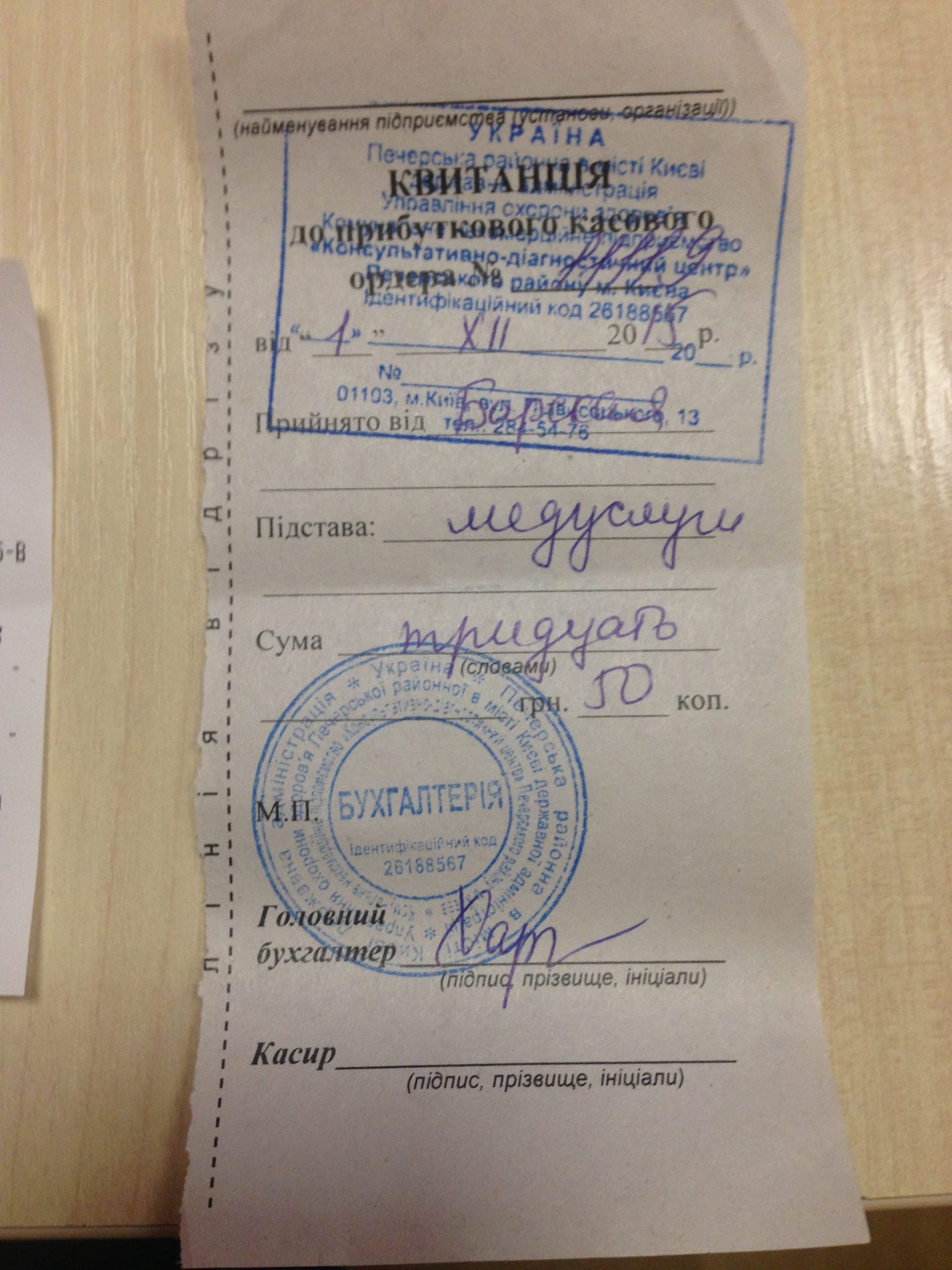 24.10.2014 10:46:00 – 5000,00 UAH – Благод?йний внесок, без ПДВ ДЛЯ ВАНЕЧКИ, Решетняк Ольга Викторовна