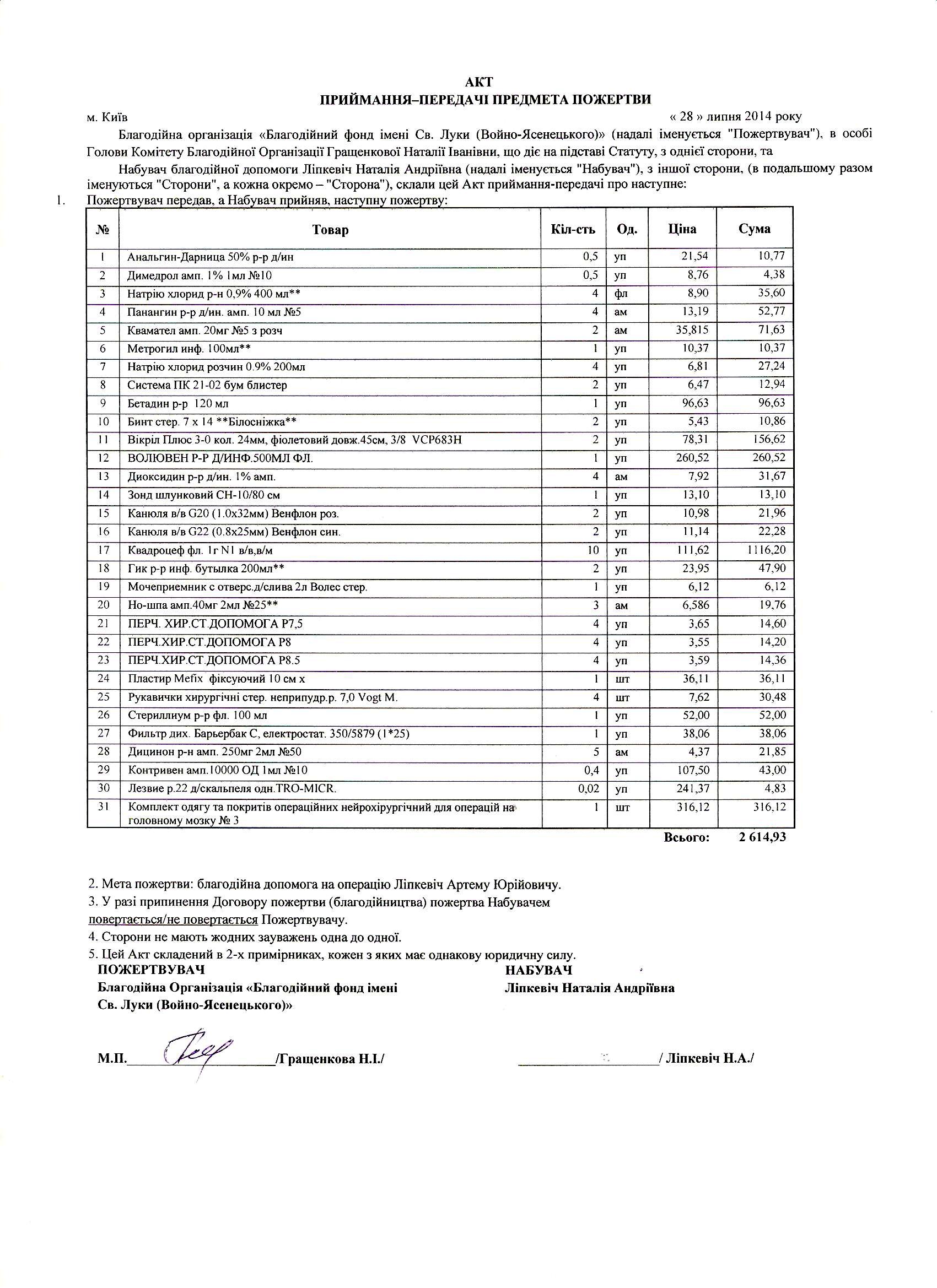 Акт от 28.07.14 – 2614,93 грн.