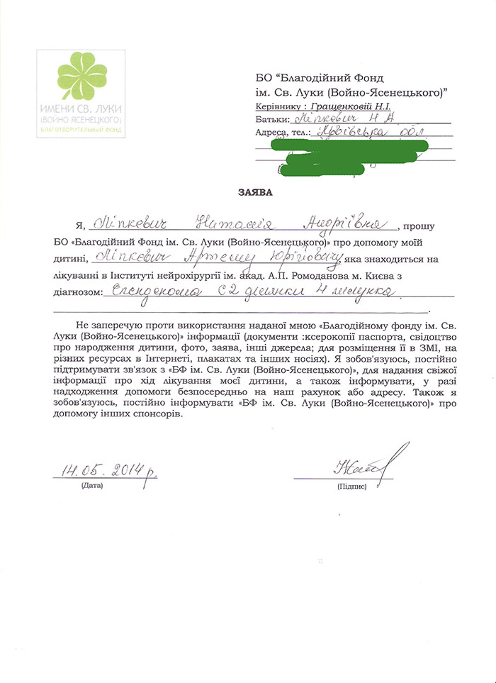 26.05.2014 09:00:00 – 100.00 UAH – на лечение Липкерова Артема Пл-щик: ЩЕКОТИХИНА НАТАЛЬЯ МИХАЙЛОВНА
