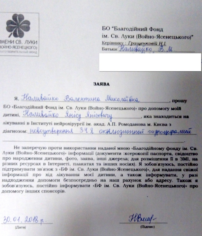 | Переказати гроші на рахунки Благодійного фонду ІМ. СВ. ЛУКИ (ВОЙНО-ЯСЕНЕЦЬКОГО), будь-яким зручним для Вас способом.Призначення платежу: Благодійний внесок на лікування Наливайко Яніса.