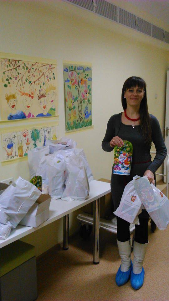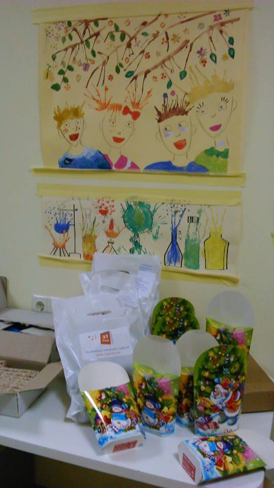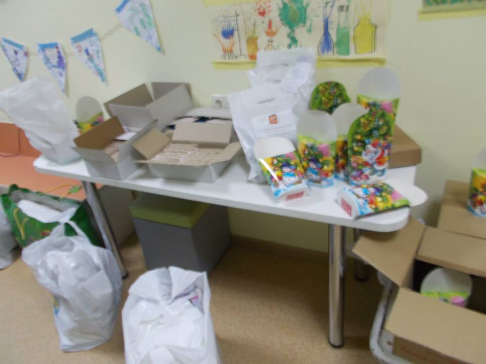 От Елены – 100 наборов подарочных конфет (36 ушли в боярскую инфекционку где лежит Никитка, 18 – сотрудникам детдома когда забирали Серафима, остальное – в нейрохирургию).