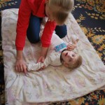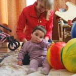 Лерочка. Уже хорошо сидит, если дать в руки игрушку – берет, рассматривает; много времени проводит в вертикализаторе. Лера очень много болела осенью, поэтому мы так и не смогли организовать ее поездку в Козявкина. Будем планировать на февраль-март.