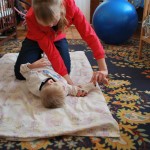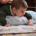 Женя. Женя – это просто бомба! За первые 2 месяца работы он научился вставать, 4 месяца работы – начал ходить вдоль опоры, 6 – бегать с ходунками… Сейчас он может самостоятельно отжаться 10 раз! Научился самостоятельно вылазить из манежа и теперь никому покоя в группе от него нет )))