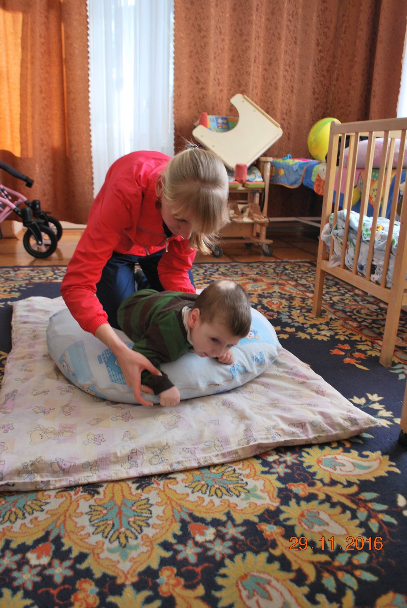 Вы не представляете, насколько эти занятия важны для наших деток! Ведь некоторые из них совсем лежачие. И правильная регулярная физическая нагрузка не дает появляться пролежням, улучшает кровообращение, уменьшает количество пневмоний и улучшает их общее состояние.