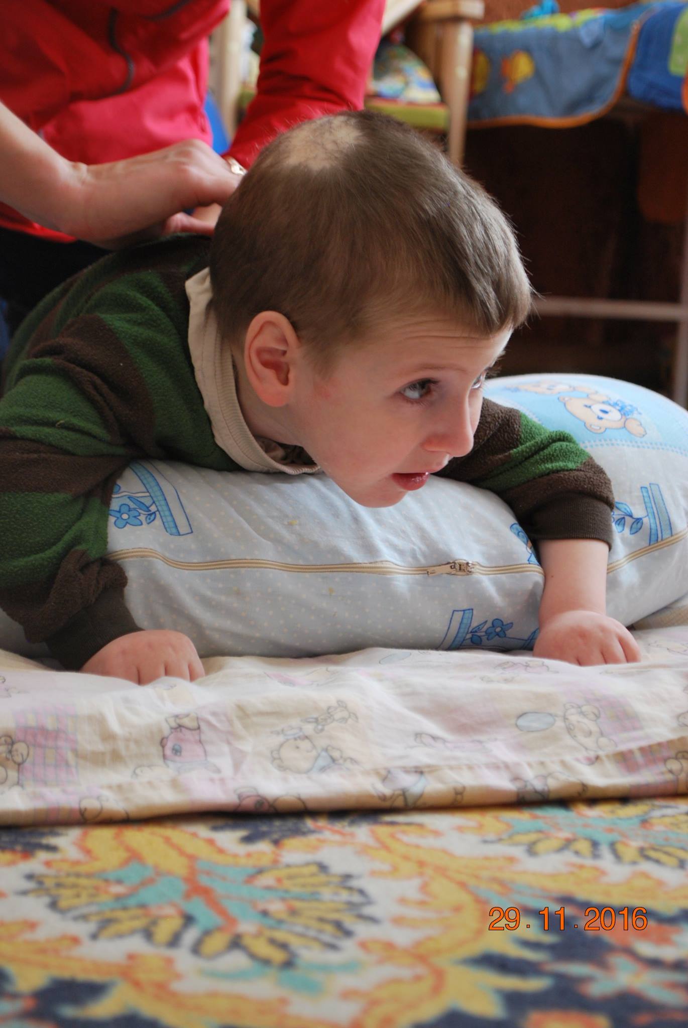 Никита М. Намного лучше стал держать голову, намного уверенней! Для полностью лежачего Никитки это огромный прогресс! За этот год он меньше находился в больнице. Доктора детского дома даже начали думать о том, чтобы попробовать постепенно снимать его с зондового кормления…