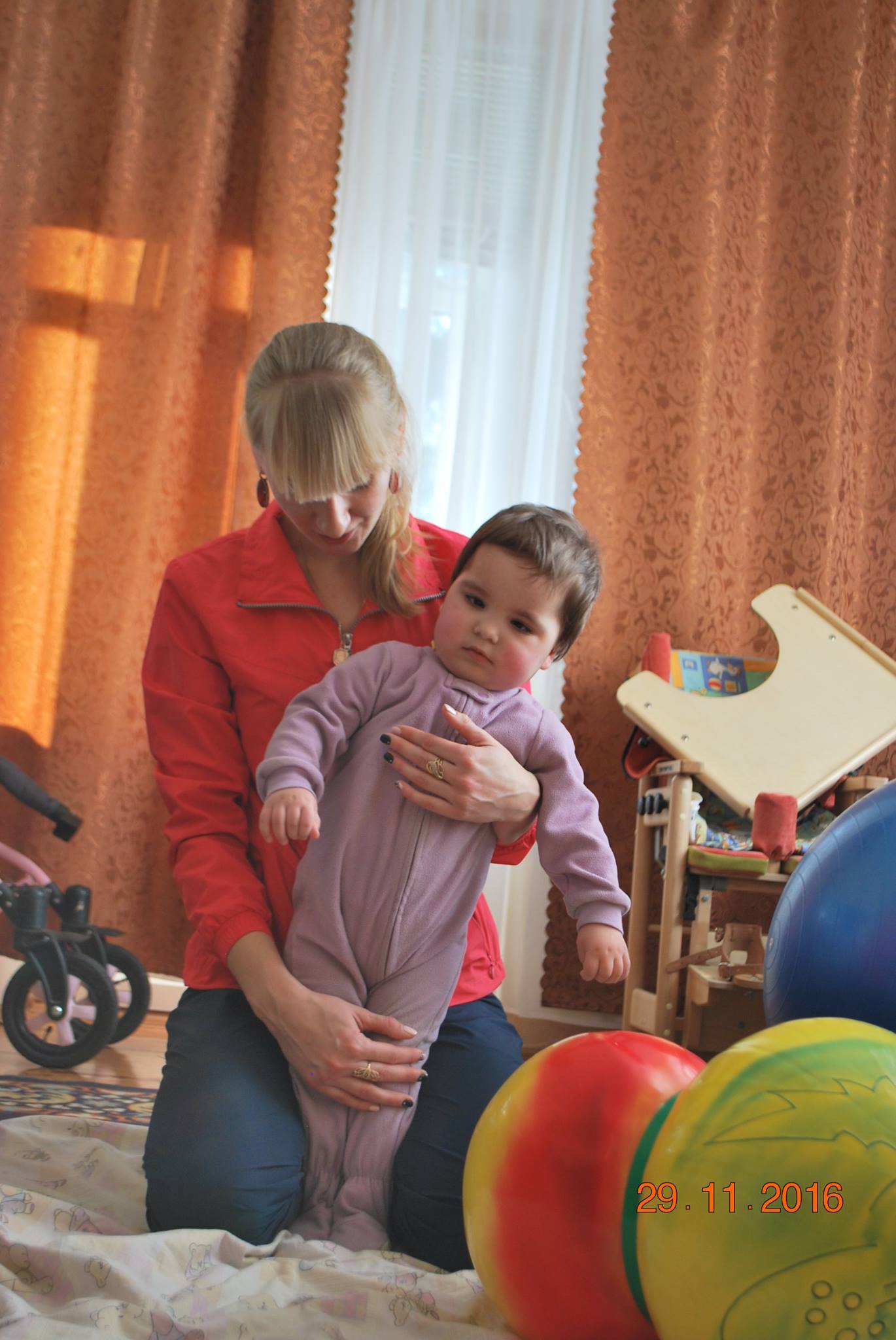 Лерочка. Уже хорошо сидит, если дать в руки игрушку – берет, рассматривает; много времени проводит в вертикализаторе. Лера очень много болела осенью, поэтому мы так и не смогли организовать ее поездку в Козявкина. Будем планировать на февраль-март.