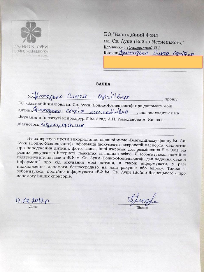 Благотворительный взнос без НДС на лечение Софии Приходько