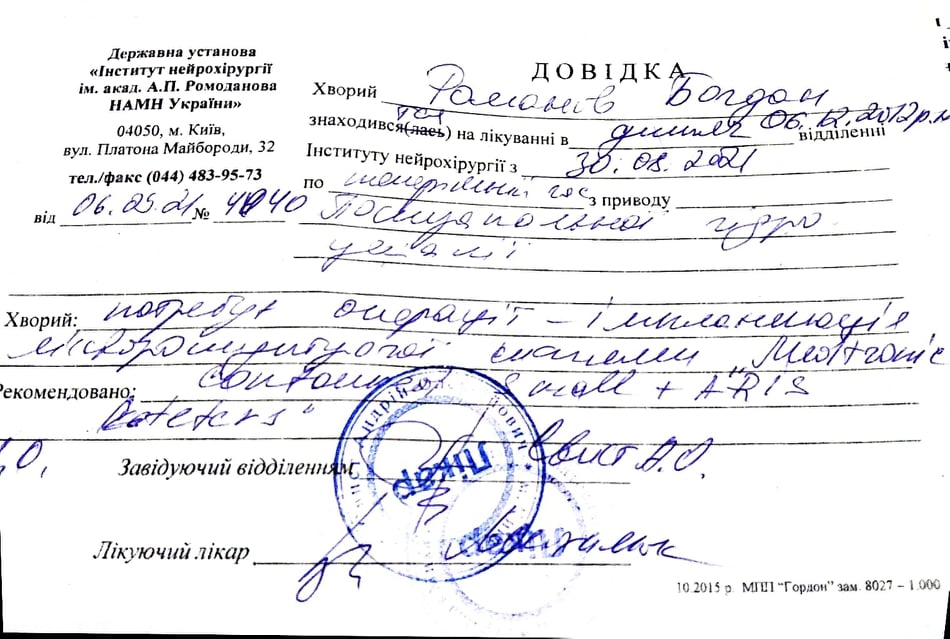 Родина багатодітна, з села Кіровоградської області. З коштами геть погано. Зовсім. Зараз дівчата з волонтерської групи Агент031 годують їх з мамою в лікарні, бо навіть на хліб нема. А дитину потрібно лікувати і оперувати. Зняти запалення, а потім встановити новий шунт. Скоріш за все з бактесілом, аби не було повторного відторгнення – а це означає що шунт потрібен дорогий – більше 40 тис. Загалом, на лікування, нам оптрібно зібрати тисяч 60-70. І Дай Боже, щоб це були вже останні втручання і ще цієї осені Богданчік зміг повернутися в свій клас!
