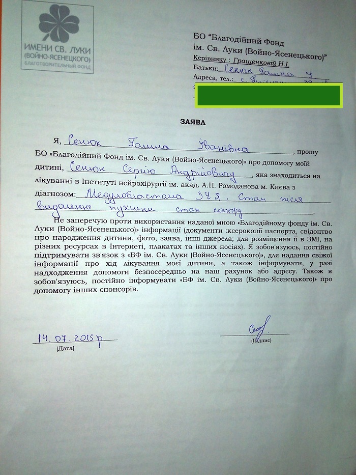 Переведен. Сенюк Сергей, 5 лет, опухоль ЗЧЯ