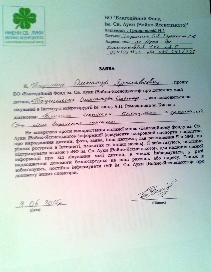 27-го мая Сашеньке сделали операцию по удалению опухоли. С тех пор девочка в реанимации. Ежедневно на жизнеобеспечение ребенка необходимо 1,5 тыс. гривен.
